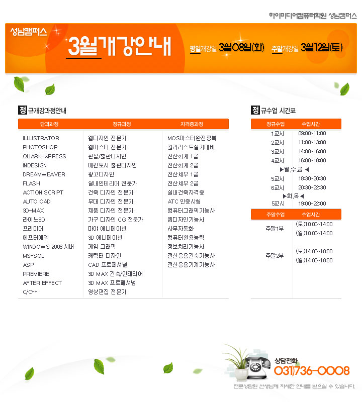 [정규개강] 2011년 3월 정규개강안내