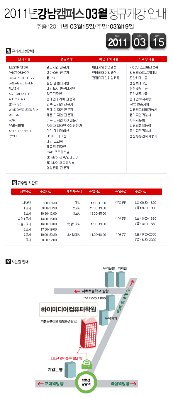 [정규개강] 2011년 3월 정규개강안내
